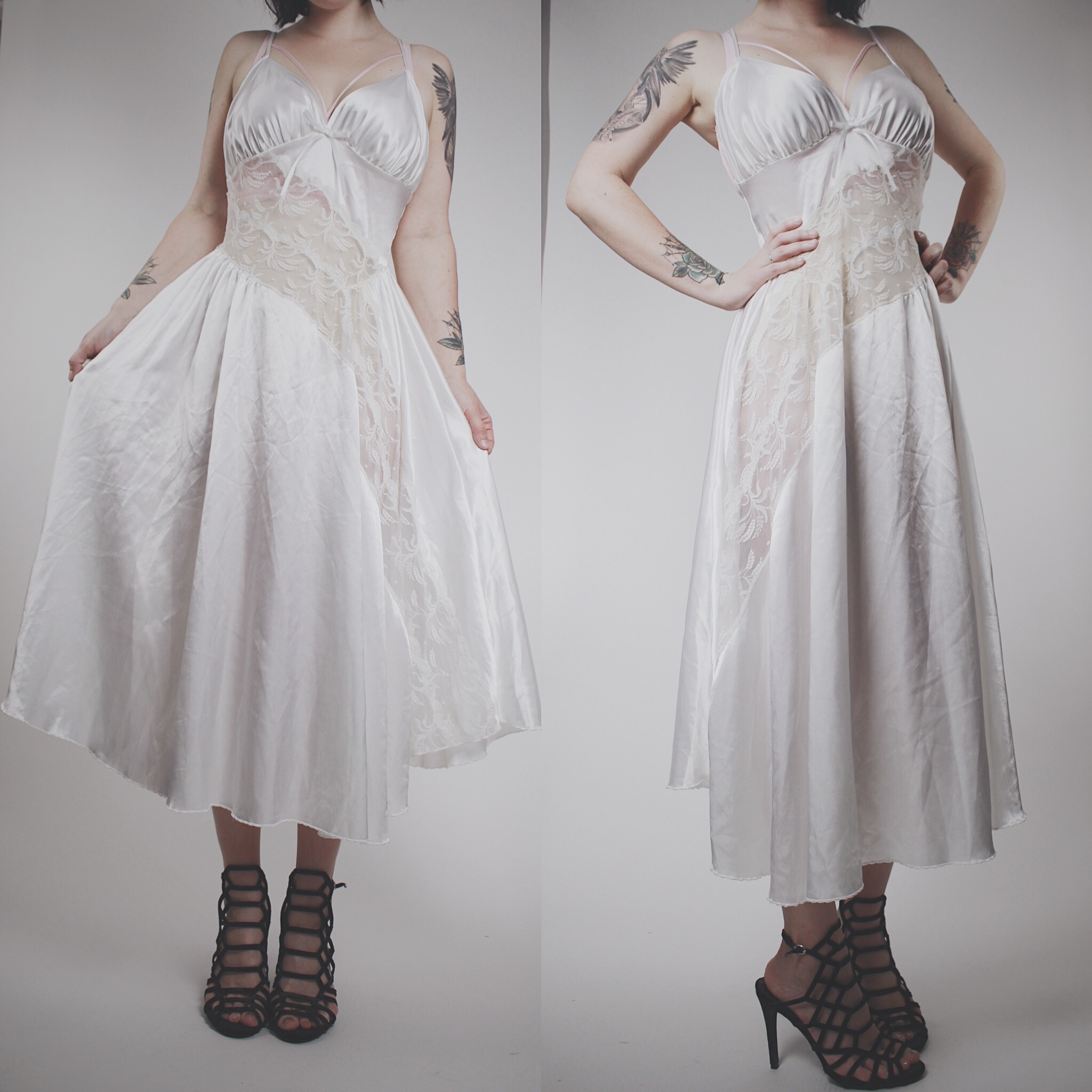 CLAIMED @aphasia.12 - Vintage 80s White Satin and Lace Bridal Nightgown
