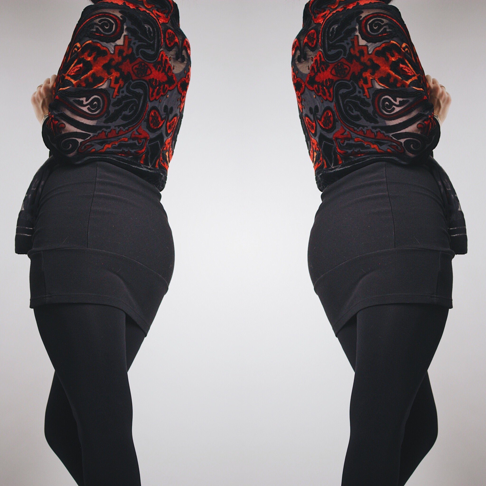 Vintage 90s "Phoenix" velvet and sheer burnout shawl. Black with a gorgeous red and orange ombre velvet paisley overlay, reminiscent of a fire bird! Black trim. Fringe is super thin and delicate. Rectangular, measures 60" by 20". Has a few tiny holes and snags near the edges on either end and a couple of tiny areas of wear. Imperfections reflected in price. This is a perfect throwover piece for chilly nights and can be layered for fall and winter as a scarf, worn over the shoulders, or even as a wrap skirt! Super unique. Stevie Nicks would be proud. One size fits most.