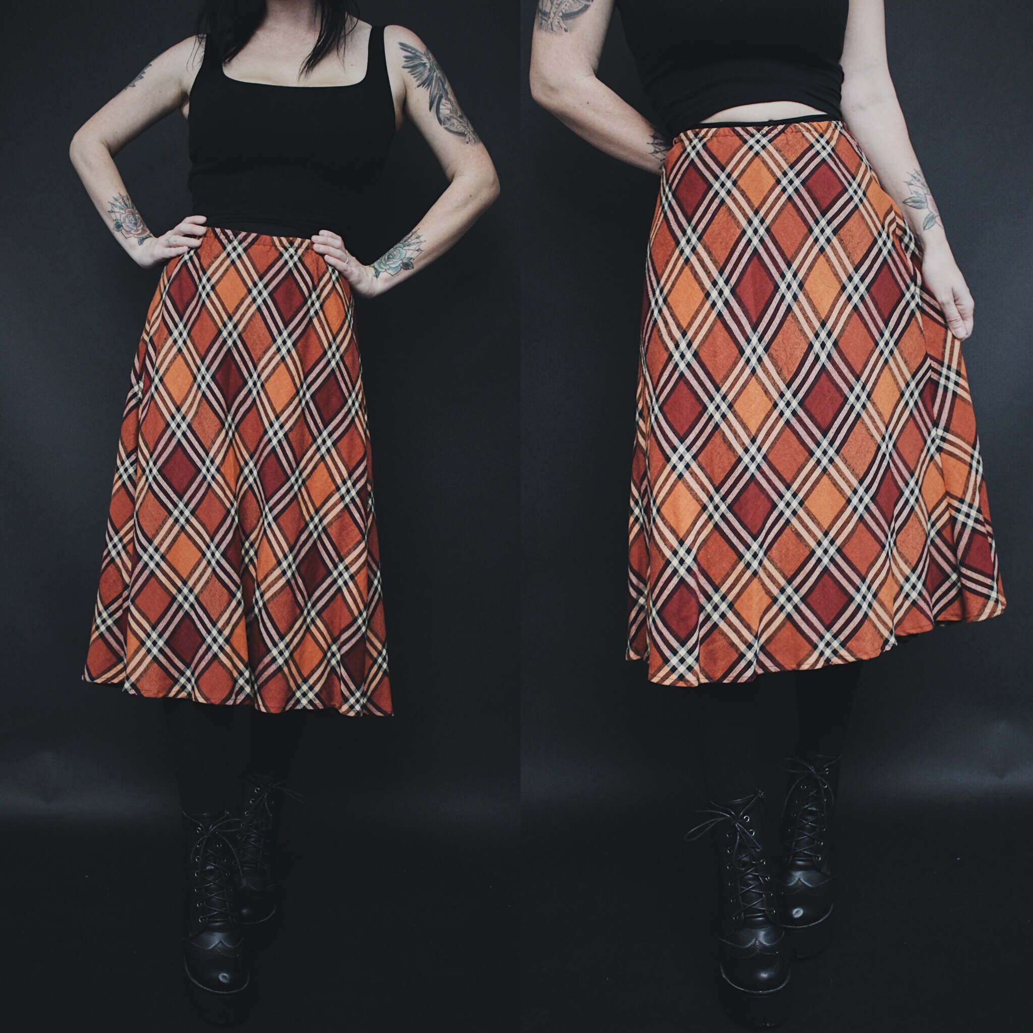 RESERVED FOR LINDSAY - Vintage 70s FALL VIBES Plaid Midi Skirt