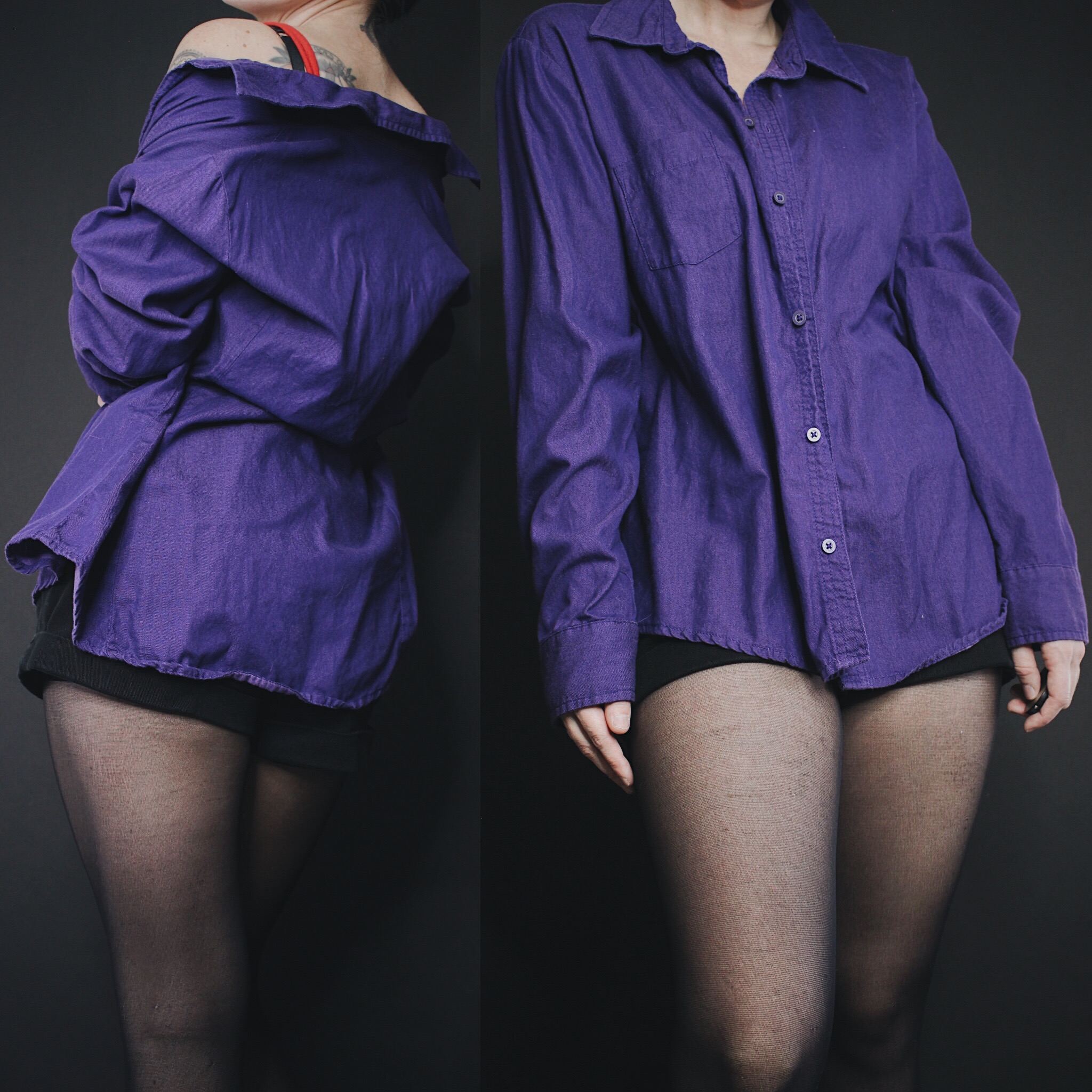 Vintage 90s denim button down shirt in a gorgeous bright amethyst purple shade. Perfect for comfy grunge vibes. This is a great alternative to your regular plaid flannel shirt!