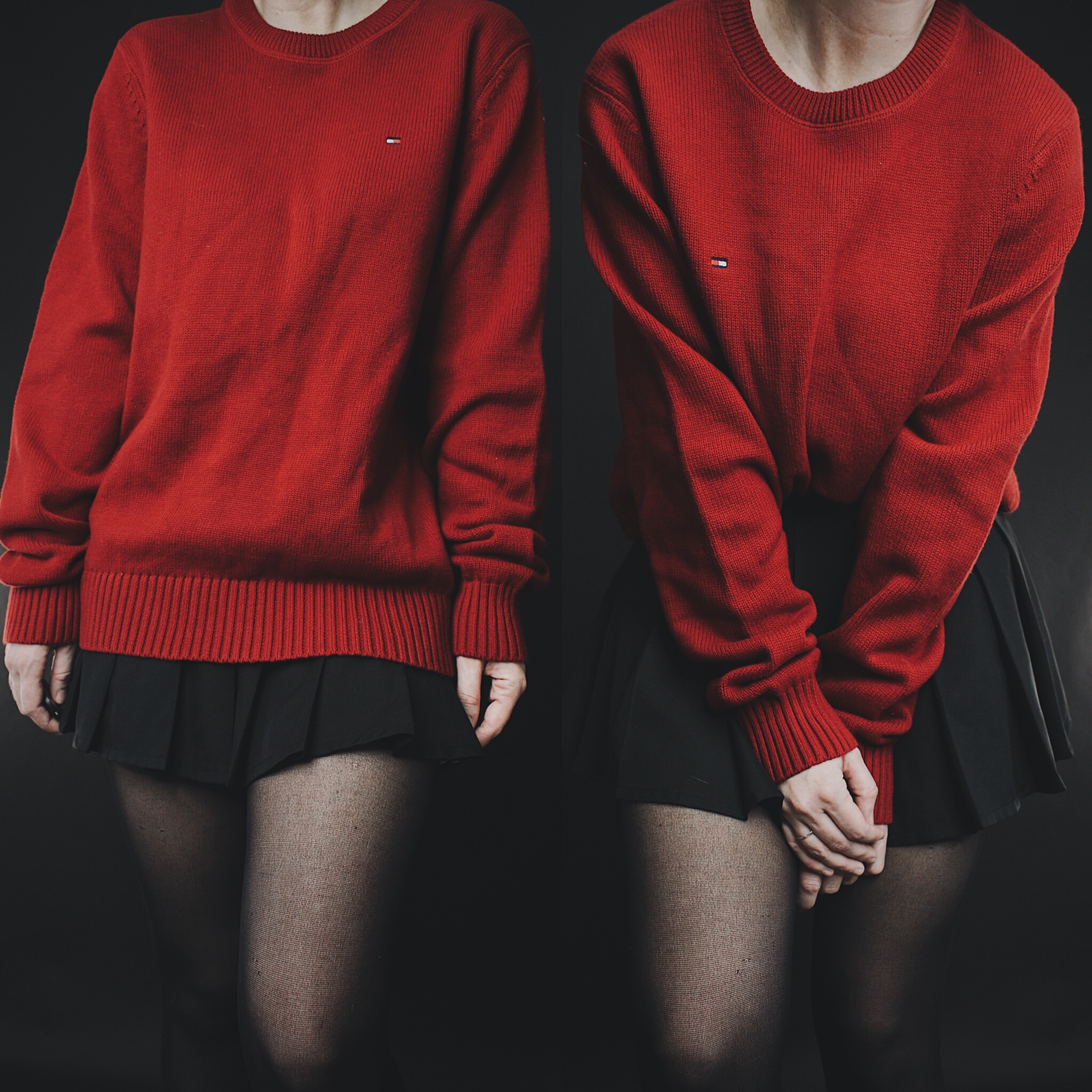 Vintage 90s authentic Tommy Hilfiger brand sweater. Tumblr aesthetic realness meets cozy holiday chic. Gorgeous bright cherry red color. Sooo soft and perfectly slouchy. Great for layering all year round. Pair with faux leather leggings or skinny jeans, or tuck it into a festive mini for a classic casual holiday look!