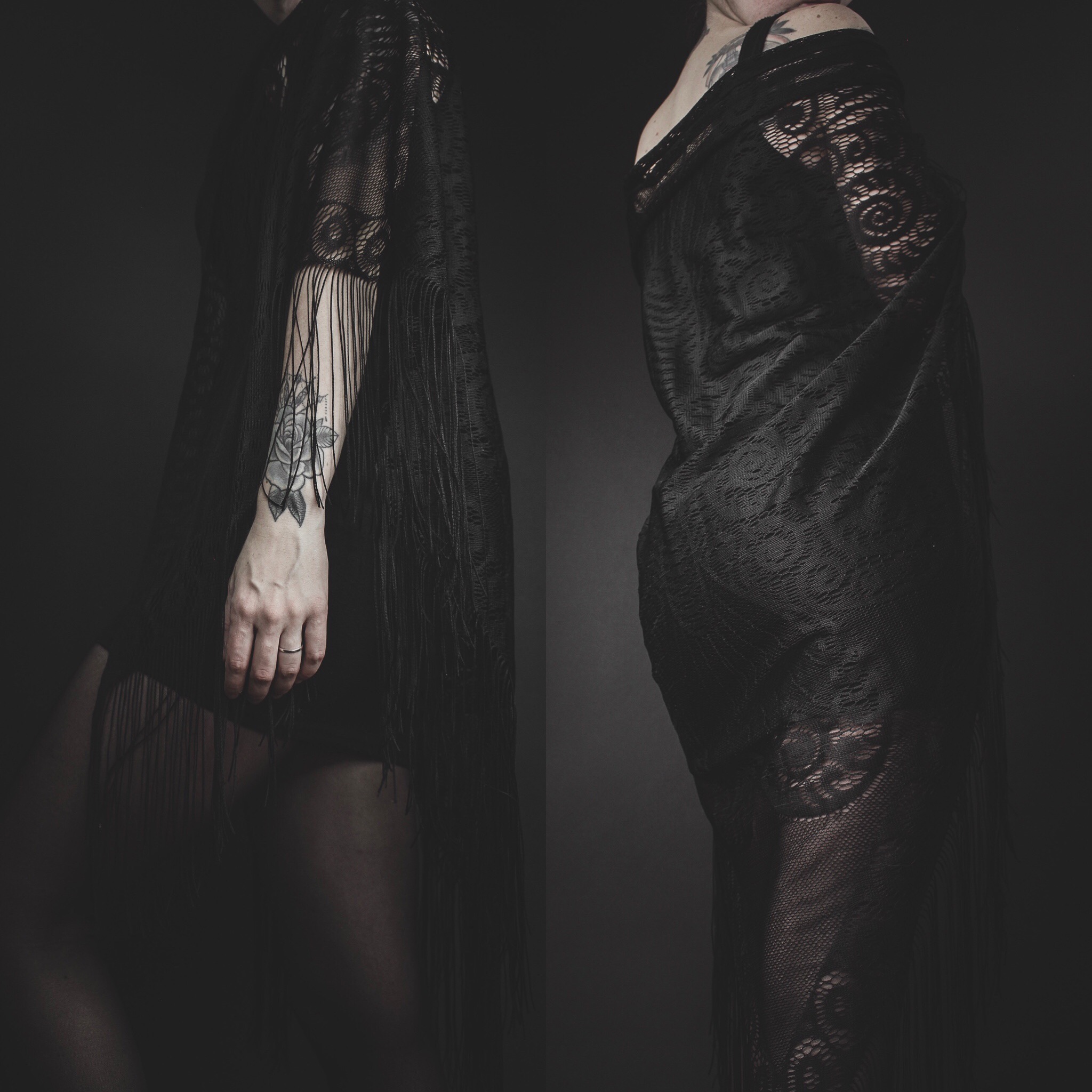 Vintage 70s black lace butterfly fringed shawl. This is a Last Rites signature piece in an oversize style for extra drama. All Last Rites signature shawls are one of a kind with unique colors, patterns and lace! No two are alike! This one is triangular in a beautiful black mesh lace featuring an oversized butterfly motif and long delicate fringe. Can be worn over the shoulders in place of a cardigan or jacket, or as a classic scarf, belted and worn as a top, tied as a wrap skirt or swim coverup, home decor - the options are endless! Perfect throwover piece, especially for transitional weather. Works for all seasons and can be dressed up or down. The perfect staple piece for all your witchy looks. Stevie Nicks would be proud.