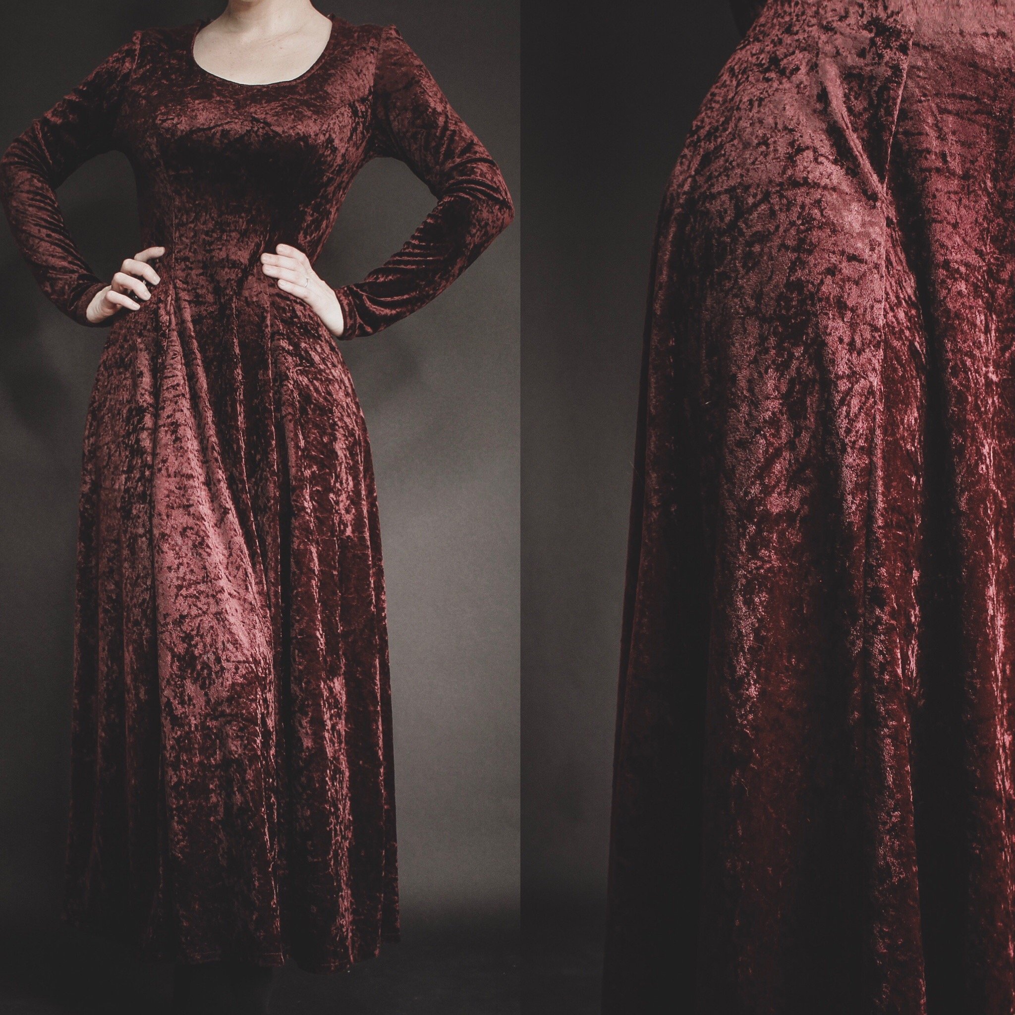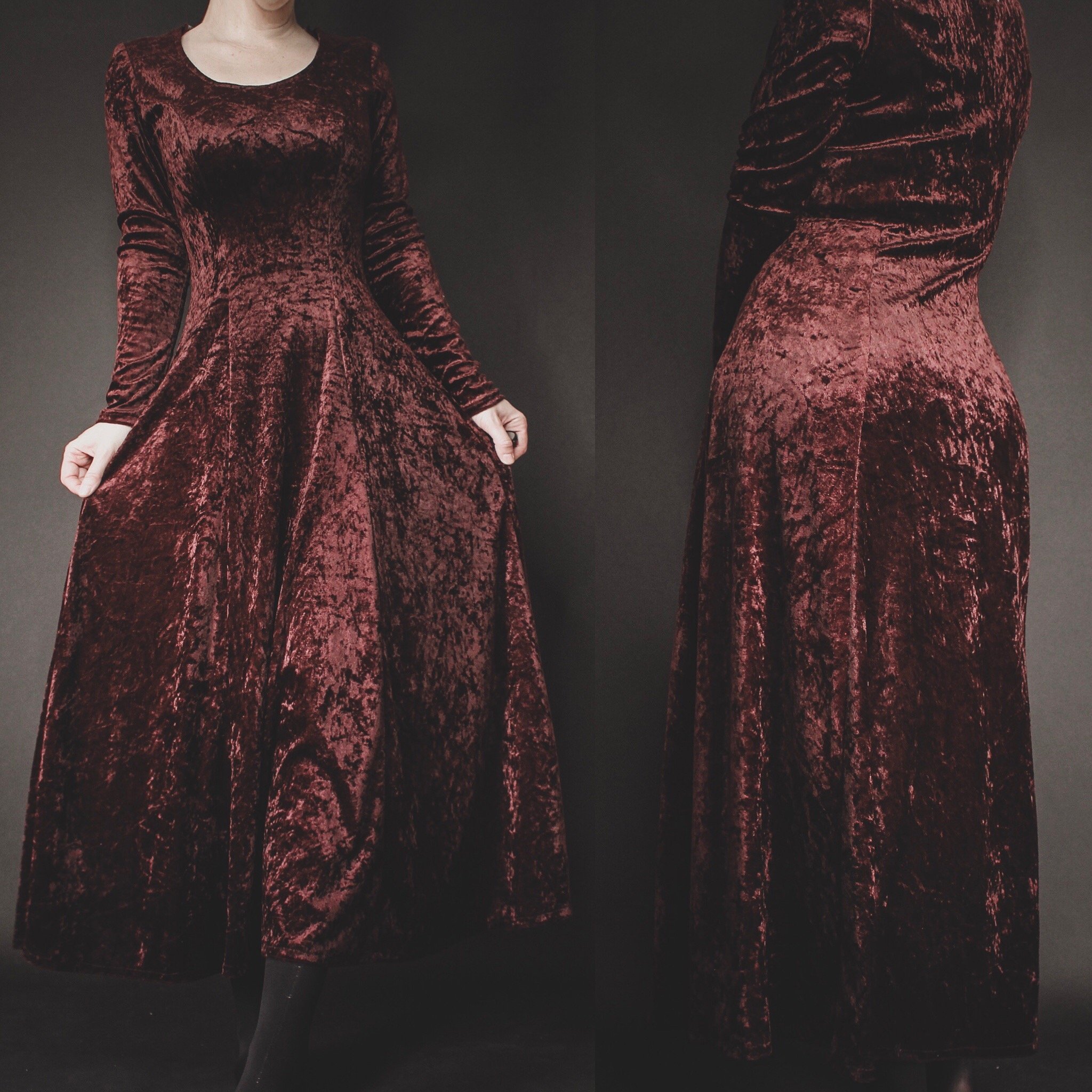 Vintage 90s NOVEMBER velvet gown. Luxe, soft crushed velvet in a rich burgundy-meets-chocolate brown shade. This is the ultimate dress for all your special autumn events - an outdoor fall wedding perhaps?