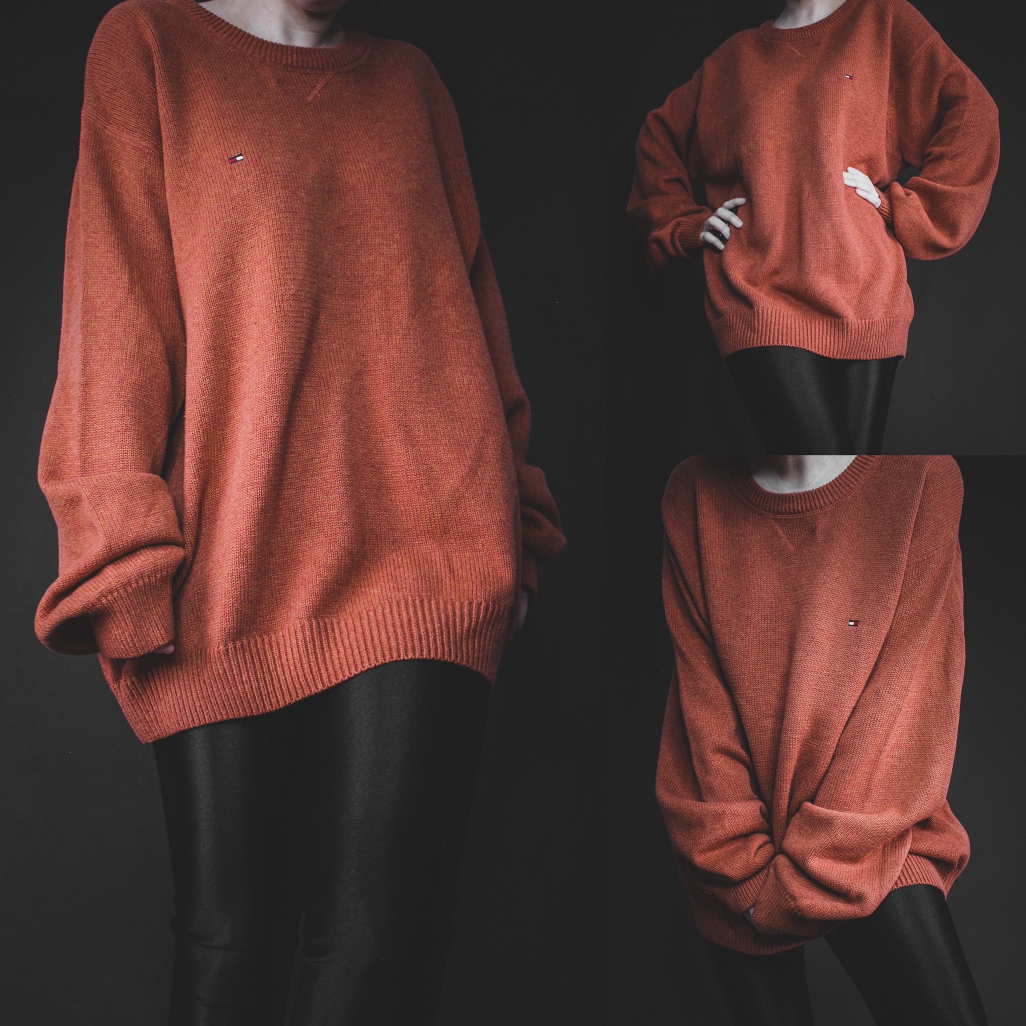 Vintage 90s Tommy Hilfiger slouchy sweater. All Last Rites signature sweaters are one-of-a-kind unisex vintage finds straight out of the 80s and 90s, with unique collars and patterns! This one is a midweight marled pumpkin orange. Perfectly oversized, comfy and cozy. Crew neck, loose balloon sleeves and a boxy cut. 100% cotton. This one feels very soft to me but may have a tiny bit of itch factor to some people - if you're not sensitive to knits or like to layer long sleeves under your sweaters, you'll be fine!