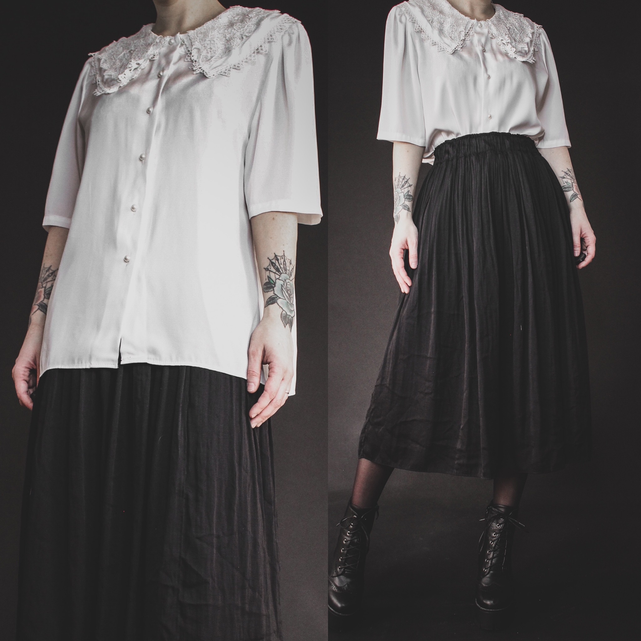 RESERVED FOR RACHEL - Vintage 80s/90s Lace Collared Silk Blouse