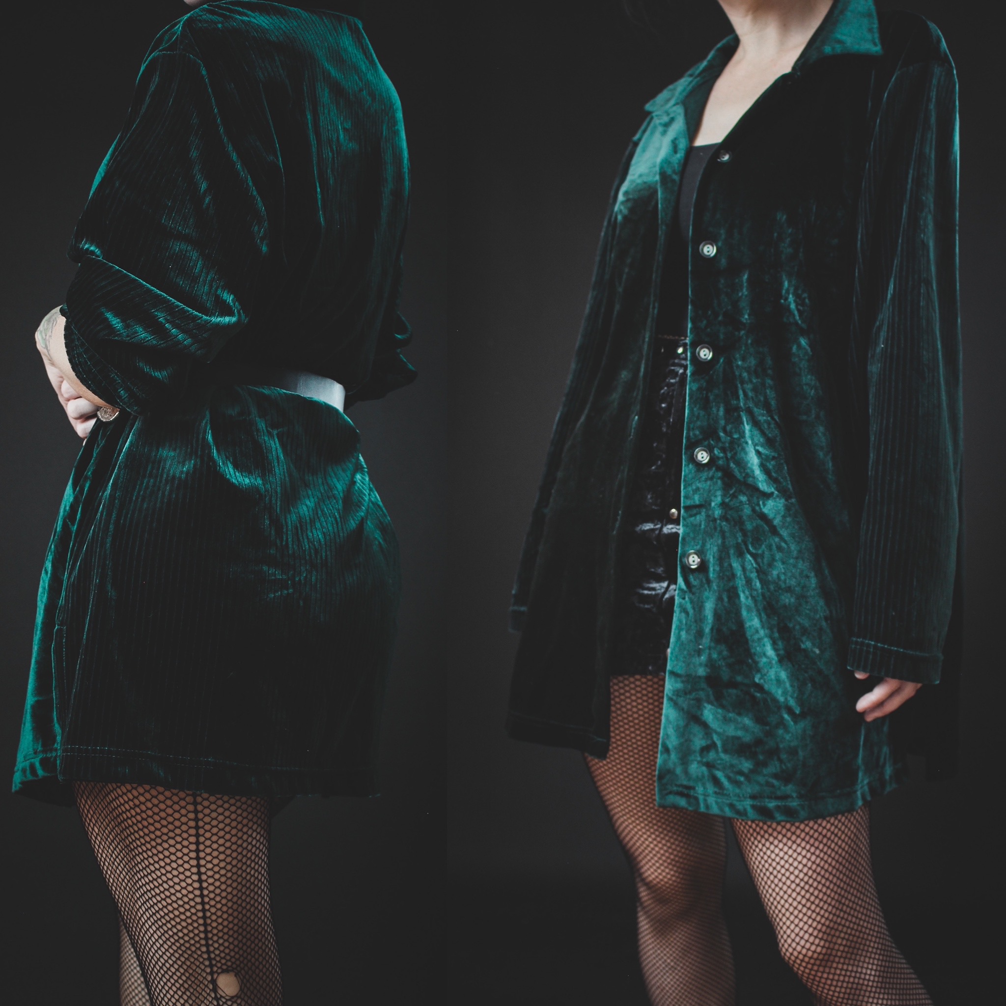 RESERVED FOR HANNA - Vintage 90s Green Velvet Button Down