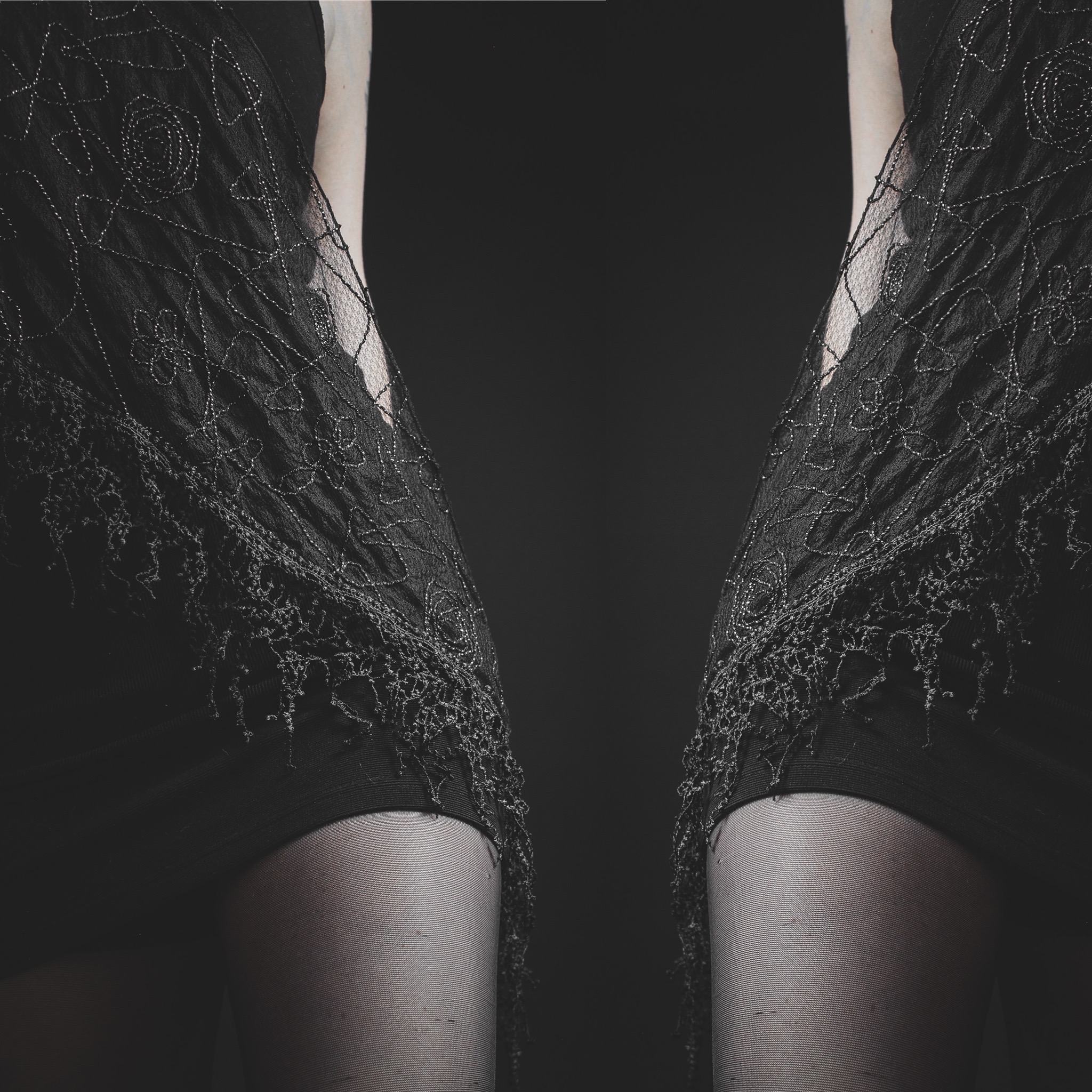 Vintage 80s "spiderweb" shawl. This is a small but super versatile piece! Sheer chiffon fabric with an abstract embroidered design in black with glittery silver accent threads all over. Gorgeous crochet fringe trim. Lots of Halloween vibes! Long, rounded triangular cut can be worn draped over the shoulders or as a collar add-on to your favorite tops, sweaters and dresses. Also can be tied around your hips like a wrap skirt, or over the bust as a wrap top. Even works as a belt, handbag accent, home decor, or head scarf! Delicate, classic and so unique.
