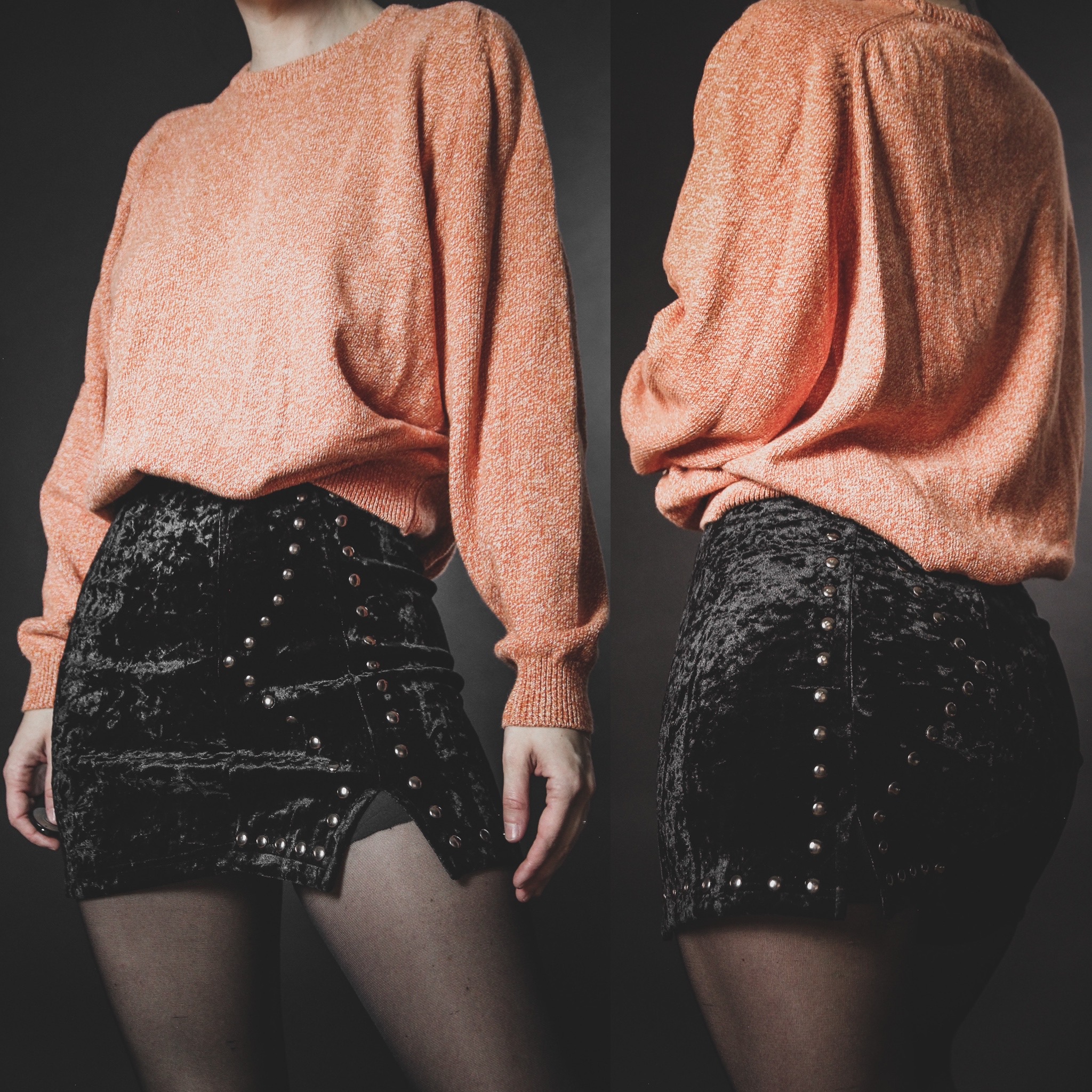 Vintage 90s "pumpkin marshmallow" signature sweater. All the cozy vibes! All Last Rites signature sweaters are one-of-a-kind unisex vintage finds straight out of the 80s and 90s, with unique collars and patterns. This one is a marled knit in shades of white and orange, giving it a pale pumpkin vibe. Perfectly oversized, slouchy and cozy. Nice big balloon sleeves that taper towards the wrist, crew neck and a boxy cut. Fitted hem makes it easy to wear it cropped, just fold it under or tuck the front into high waisted bottoms. 100% cotton, perfectly broken in with no itch factor that I can tell.