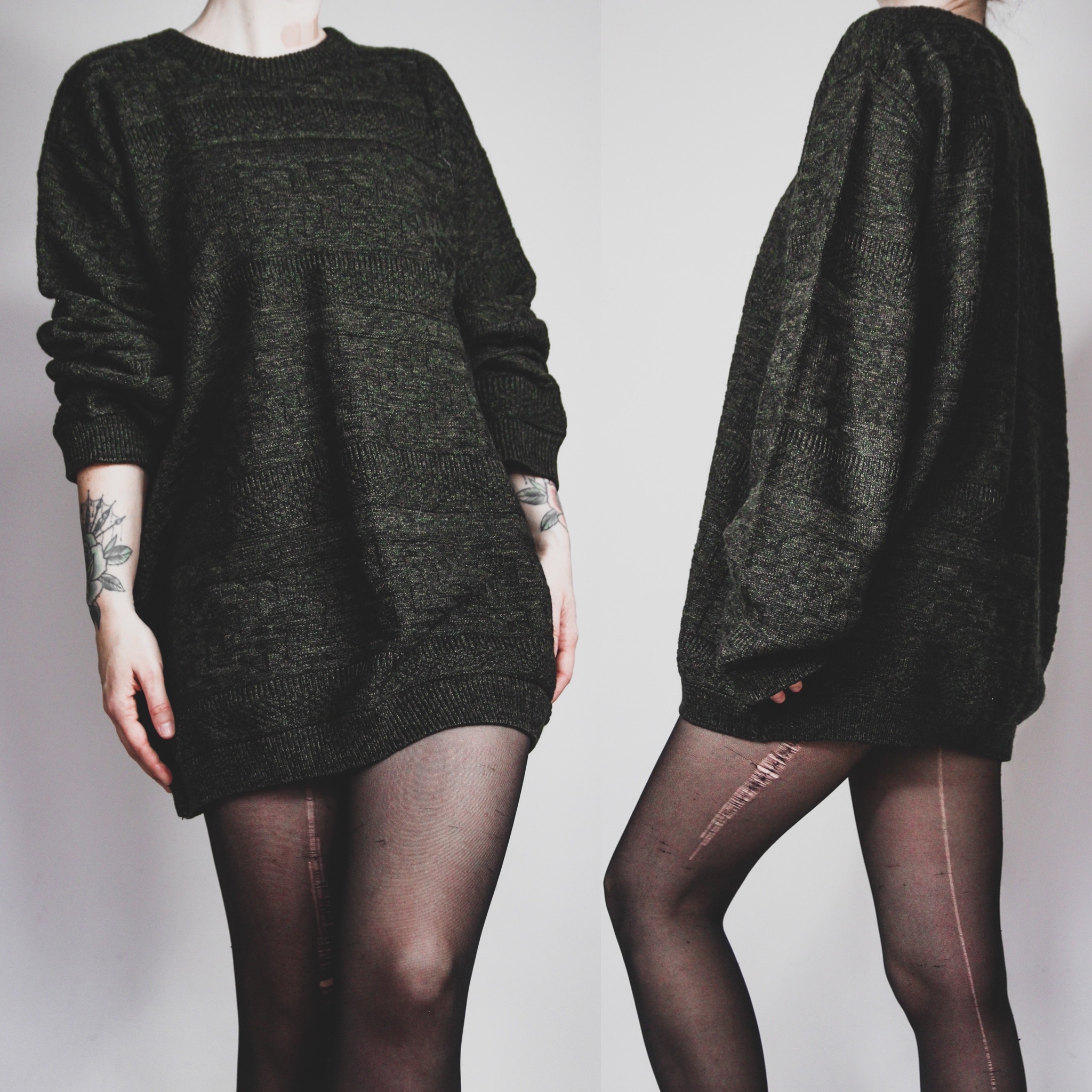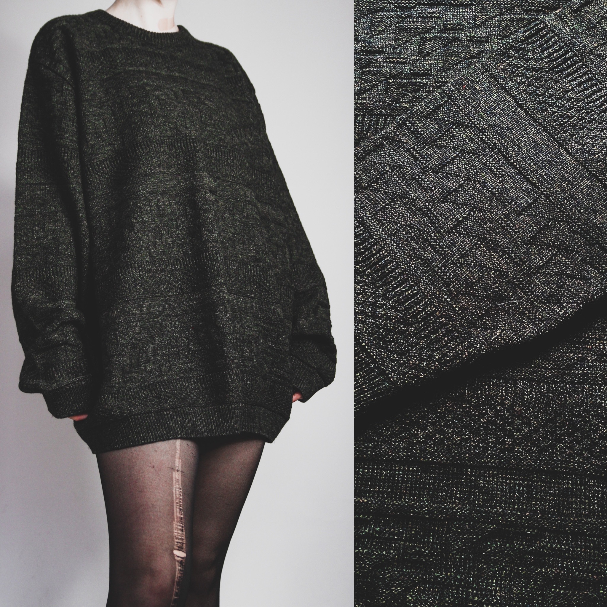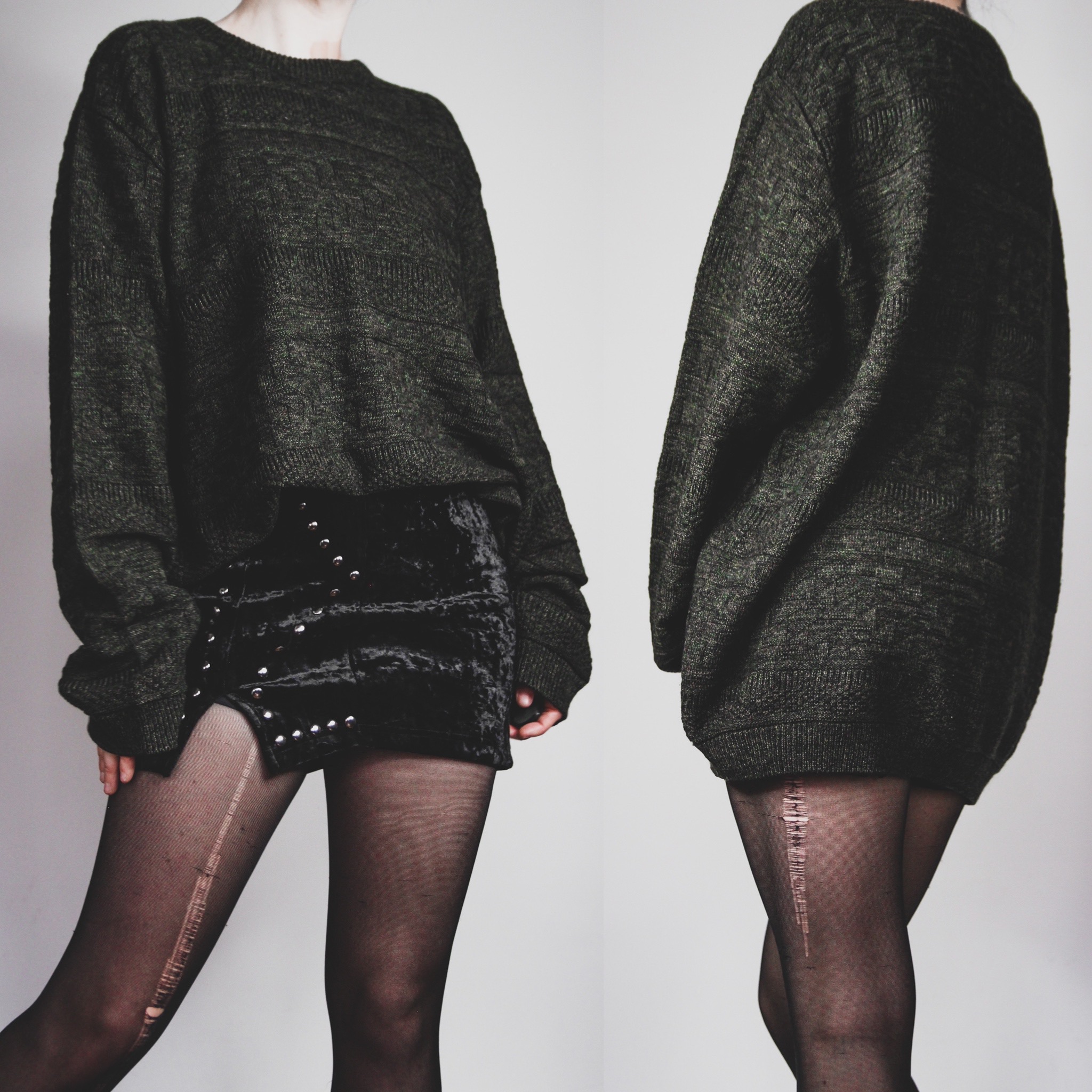 Vintage signature sweater. All Last Rites sweaters are one-of-a-kind unisex finds, straight out of the 70s, 80s and 90s! This one is a chunky geometric cable knit in a marled deep forest green. Fabric tag has almost completely faded but it is either 100% acrylic or an acrylic blend. Soft and sturdy with little to no itch factor unless you're very sensitive to knits.