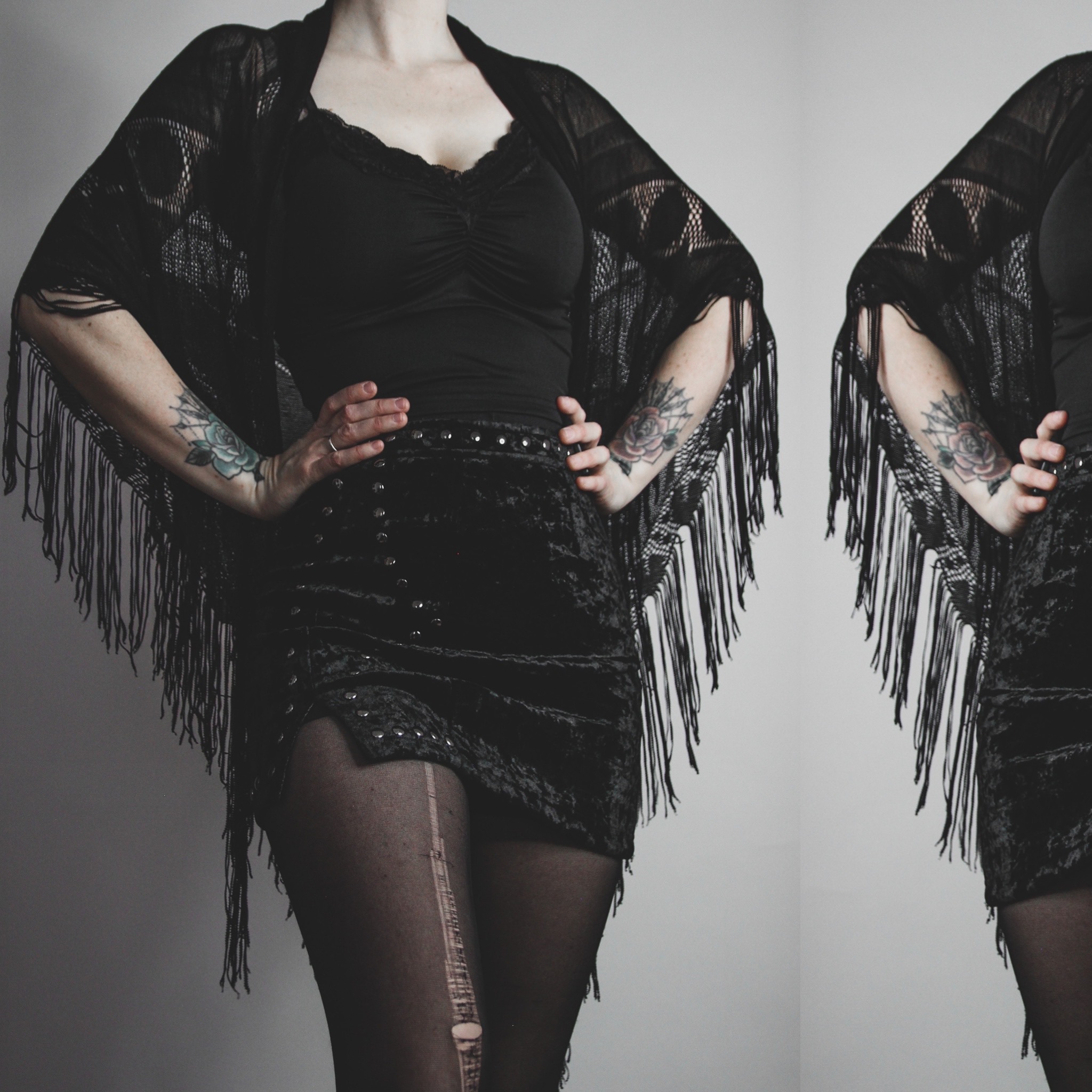 Can be worn over the shoulders in place of a cardigan or jacket, styled as a scarf, tied as a wrap skirt or swim coverup, even used as an altar covering or home decor! Works for all seasons and can be dressed up or down. Stevie Nicks would be proud.