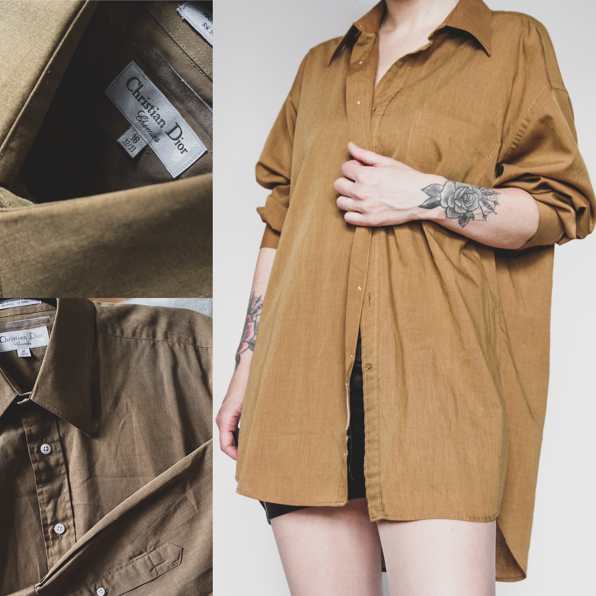 Vintage CHRISTIAN DIOR men's button down shirt. Likely 1990s but could be as old as 1970s. 60-40 cotton-poly blend. No stretch, unlined. Ultra lightweight fabric, great for layering without bulk, especially if you live in a warmer climate. Throw it on over all your casual fits for an elevated grunge vibe.