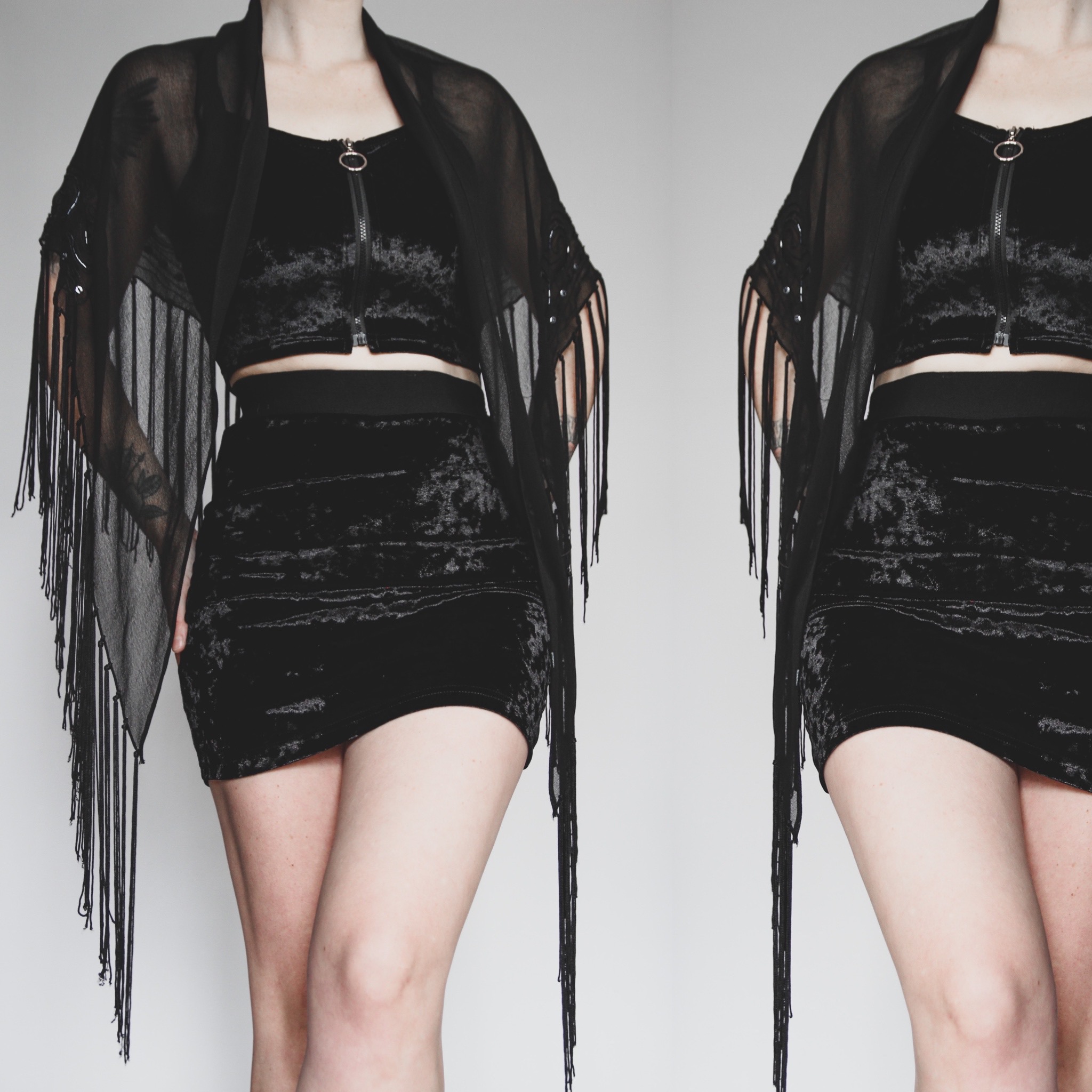 Can be worn over the shoulders in place of a cardigan or jacket, styled as a scarf, belted as a top, tied as a wrap skirt or swim coverup, or even used for home decor - the options are endless! Perfect throwover piece, especially for transitional weather. Works for all seasons and can be dressed up or down. The ultimate witchy staple piece.