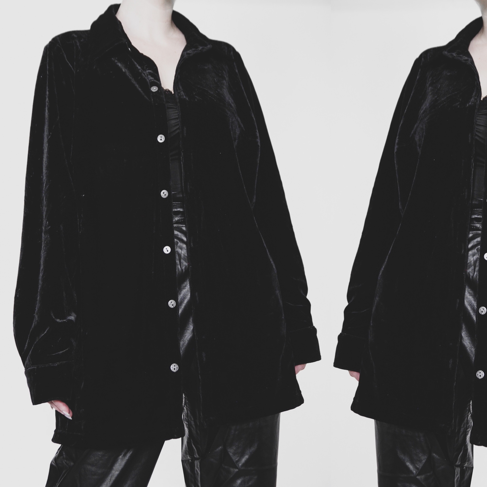 Vintage 90s Croft & Barrow black velvet shirt. Heavy enough to work as a light jacket.